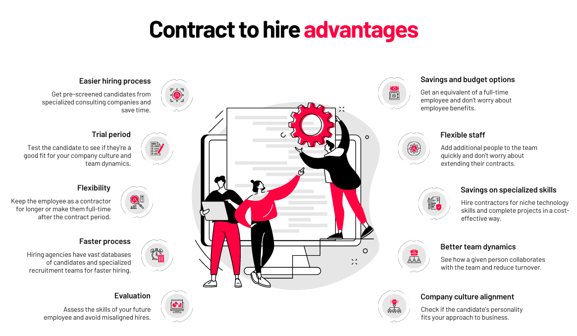 Not every business benefits from contract-to-hire roles. While this model offers several advantages, the added expenses aren’t always justified. It’s most effective for organizations hiring high-level or specialized professionals who need to be evaluated before a long-term commitment. However, for lower-cost positions, this approach may not provide enough value. With that in mind, let’s take a closer look at the key benefits of a contract-to-hire strategy.